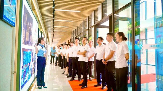 最后,全體參會人員面對黨旗重溫入黨誓詞,并參觀北湖污水處理廠治水科技館,感受集團公司運用科技創(chuàng)新手段賦能污水治理高質(zhì)量發(fā)展的具體成效。