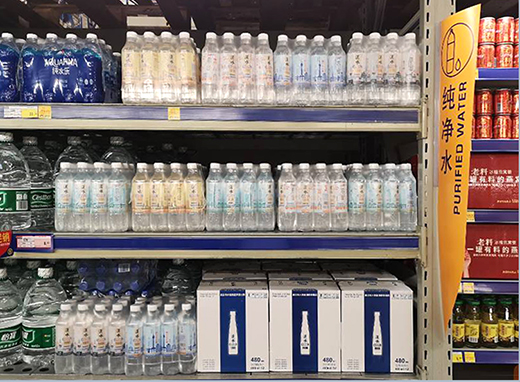 目前”?h水1906“以整箱形式銷售,上架銷售有兩款規(guī)格飲用純凈水,其中“長(zhǎng)江之心”高端款式每瓶480毫升每箱12瓶,售價(jià)48元/箱,單價(jià)4元/瓶;“武漢映象”普通款式每瓶500毫升每箱12瓶,售價(jià)30元/箱,單價(jià)2.5元/瓶。