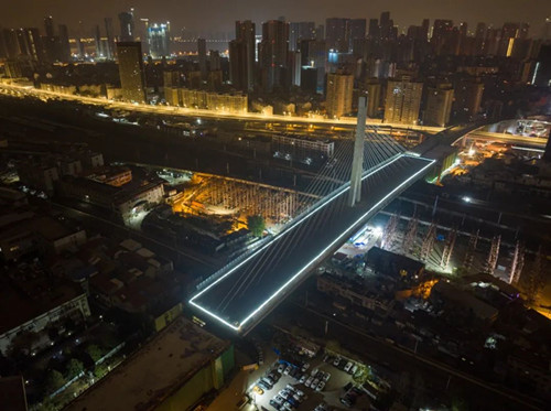 為最低限度減少對(duì)鐵路運(yùn)營的影響,項(xiàng)目提前協(xié)調(diào)鐵路部門做好調(diào)配,確保在轉(zhuǎn)體施工期間沒有列車通過,通過現(xiàn)場(chǎng)技術(shù)、作業(yè)、測(cè)量各崗位人員密切聯(lián)動(dòng),最終使這一安全風(fēng)險(xiǎn)高、技術(shù)難度大的施工項(xiàng)目,成功實(shí)現(xiàn)零誤差。同時(shí),在市城建局和江岸區(qū)政府的大力支持下,項(xiàng)目對(duì)橋梁轉(zhuǎn)體范圍內(nèi)的140名居民進(jìn)行了臨時(shí)安全轉(zhuǎn)移,確保了上跨鐵路橋安全順利轉(zhuǎn)體完成。