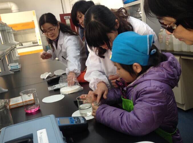 參觀展示館后,小記者們前往此次“親水之旅”的最后一站――市水務(wù)集團(tuán)水質(zhì)監(jiān)測(cè)中心。一位穿著白色實(shí)驗(yàn)服的叔叔早已在中心樓下等待孩子的到來(lái),小記者們看著這位衣著和醫(yī)生一樣的叔叔,紛紛躲在了家長(zhǎng)和老師的身后,怯生生地問(wèn):“這里是醫(yī)院?jiǎn)??怎么這位叔叔穿著醫(yī)生的衣服呀?”這位“醫(yī)生”叔叔聽(tīng)后笑著說(shuō):“這里是水務(wù)集團(tuán)的水質(zhì)監(jiān)測(cè)中心,也可以說(shuō)是‘醫(yī)院’,但不是給人看病的喲,而是給自來(lái)水檢查‘身體’和看病的地方喲!”聽(tīng)完“醫(yī)生”叔叔的解釋后,小記者們更加好奇了,迫不及待地想去一探究竟。小記者們來(lái)到了監(jiān)測(cè)中心的主體樓層,該中心副主任鮑潔接待了他們。為了讓孩子們能聽(tīng)懂專業(yè)的水質(zhì)檢測(cè)知識(shí),不僅為他們講解了水質(zhì)檢驗(yàn)的用途和常用方法,還帶著他們參觀了實(shí)驗(yàn)室和儀器室。在實(shí)驗(yàn)室里,鮑主任手把手地教小記者們做水中余氯的實(shí)驗(yàn),當(dāng)看到取樣瓶中的水樣經(jīng)過(guò)藥劑作用后,從透明變?yōu)樽霞t色,小記者們的眼神中充滿了好奇,興致勃勃地詢問(wèn)著原因。鮑主任耐心地一一作答;鮑主任還帶著他們參觀了原子吸收室、油分析室、污水監(jiān)測(cè)室等實(shí)驗(yàn)室,為小記者們講解各種檢驗(yàn)儀器的用途和操作方法。看著這些“機(jī)器手”完成自動(dòng)取樣、滴入藥劑、分析數(shù)據(jù)等步驟后,小記者們驚嘆了:“原來(lái)有這么多高科技的儀器為自來(lái)水的水質(zhì)安全護(hù)航把關(guān)?。 ?/font>