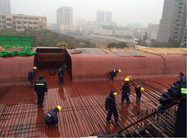 由于春節(jié)期間連綿的陰雨天氣對正在搶趕進度的工程施工帶來了考驗,為保證二環(huán)線“4.30”的“畫圓”目標(biāo),橋建集團公司雄楚大街和龍陽大道項目經(jīng)理部成員及各參建單位分管領(lǐng)導(dǎo)和項目部經(jīng)理帶領(lǐng)1000多名施工人員攜手共戰(zhàn)雨天,緊抓生產(chǎn)進度不放松。