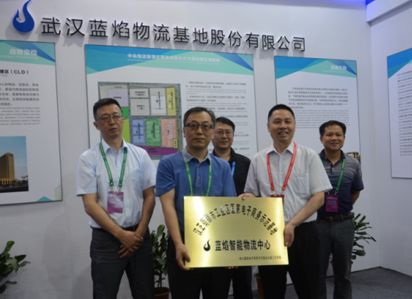 5月18日,在第九屆中國中部投資貿(mào)易博覽會暨首屆中國(武漢)國際電子商務(wù)展上,?口區(qū)區(qū)長景新華現(xiàn)場授予武漢藍焰電商城(藍焰智能物流中心) “國家電子商務(wù)示范基地”的稱號。武漢藍焰物流公司董事長袁云飛、常務(wù)副總經(jīng)理田勇參加了授牌儀式。