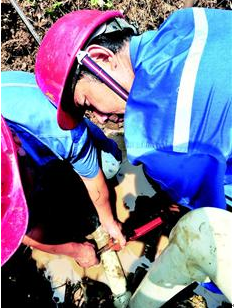 一個(gè)上午,武昌供水部維修班共處理用水故障23起。昨日,記者隨維修班的師傅們一起忙到中午1點(diǎn),此時(shí)他們身上的衣服甚至能夠搓出白色的鹽漬。